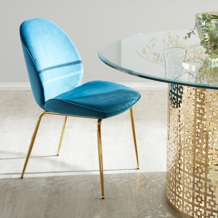 The Abbey Dining Chair breathes new life into your living spaces with its vibrant colours and stunning contemporary design. The Abbey's stylish frame is upholstered with premium soft pile peacock blue velvet fabric to create a stunning piece that's not just a feast for the eyes but a decadence in taste as well.