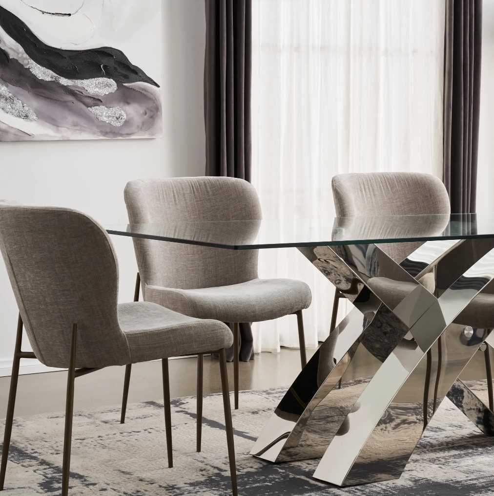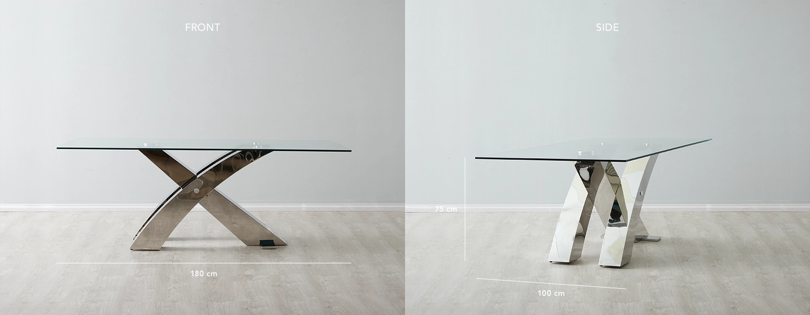 Marvel at the Adair's creatively designed frame; That highlights its elegant curves with a sleek chrome finish. This three-column frame is made of the finest stainless steel, meticulously assembled to create a modern work of art; that provides support to the stylish glass tabletop. With its great looks, plenty of space and durable materials; The Adair will be a centrepiece in your dining area for years to come. Pair the Adair with an ensemble of dining chairs for a truly stunning dining room spread.