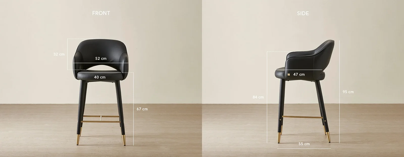 Adrianna Black Vegan Leather 67cm Counter Stool
