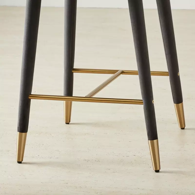 Gold-capped legs and a sturdy footrest add a touch of elegance and functionality. The velvet fabric finish enhances the stool's timeless appeal.