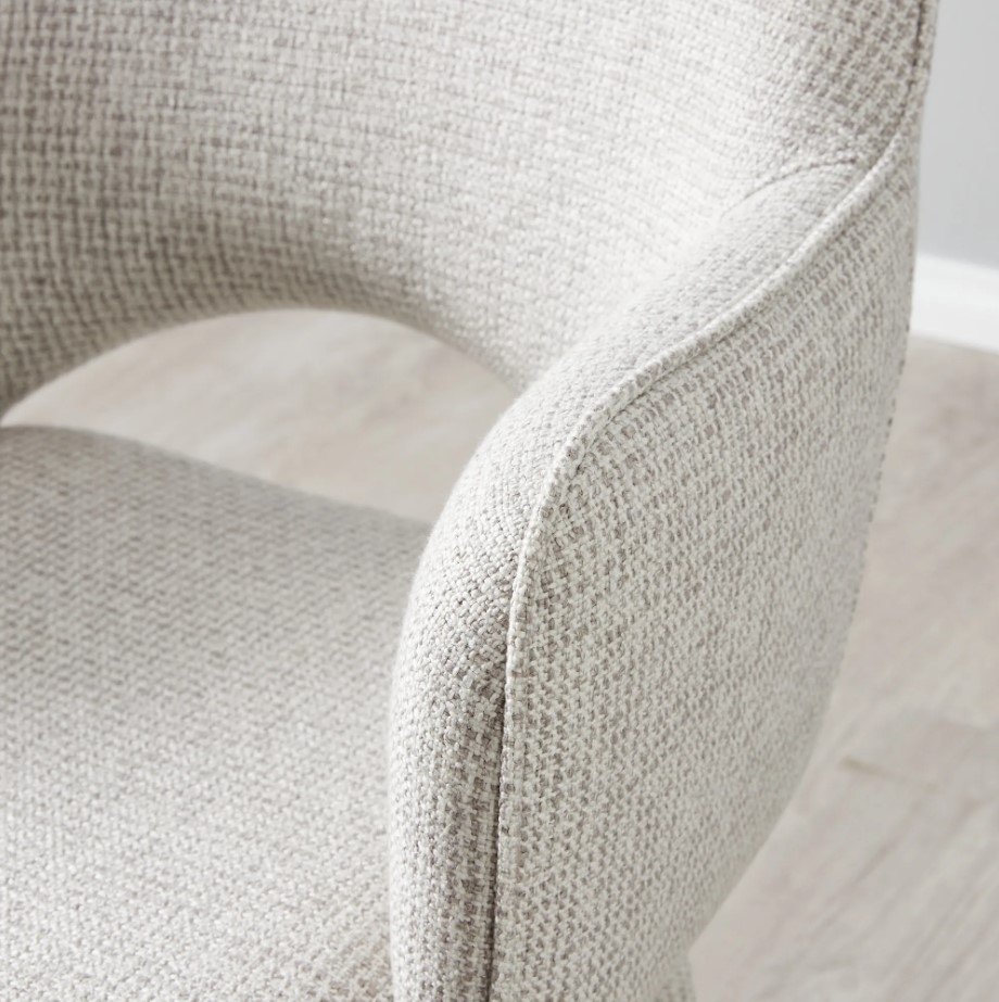 Elevate your dining experience to stylish delight with the Adrianna Dove Grey Woven Fabric Dining Chair. This stunning piece embodies a chic and modern design that redefines the art of dining. Wrapped in a sophisticated dove grey woven fabric, the Adrianna chair adds a touch of contemporary elegance to your dining area. The woven fabric not only lends a fashionable texture but also imparts a sense of timeless charm to your space.