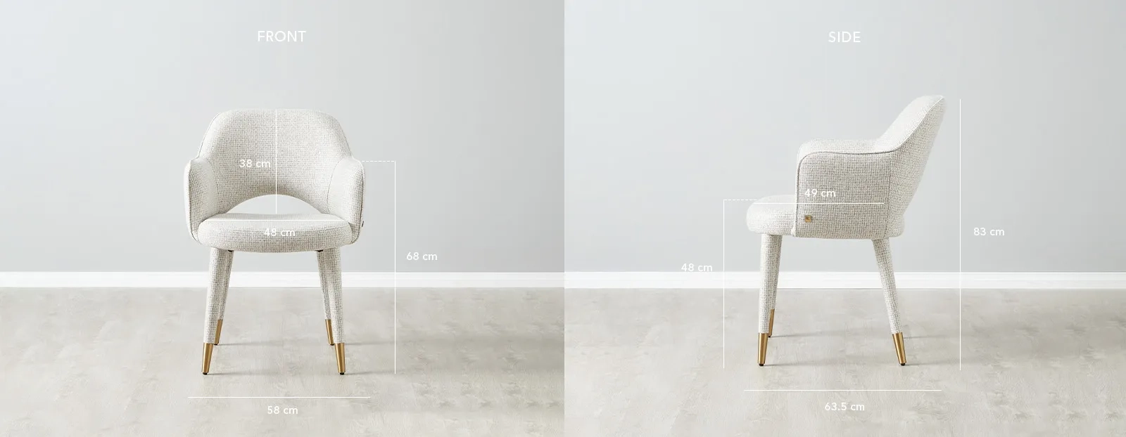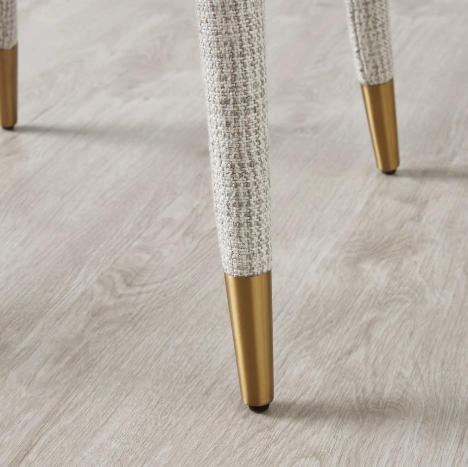 What sets the Adrianna apart is its stylish open back design, which enhances its visual appeal and introduces an element of modern sophistication to your dining setting. This thoughtful design choice creates a captivating focal point that's sure to leave a lasting impression. But it's the intricate details that truly make the Adrianna shine. The four legs, elegantly finished with golden tips, showcase the artistry and craftsmanship behind this chair, exuding an aura of luxury and refinement that elevates your dining experience to new heights.