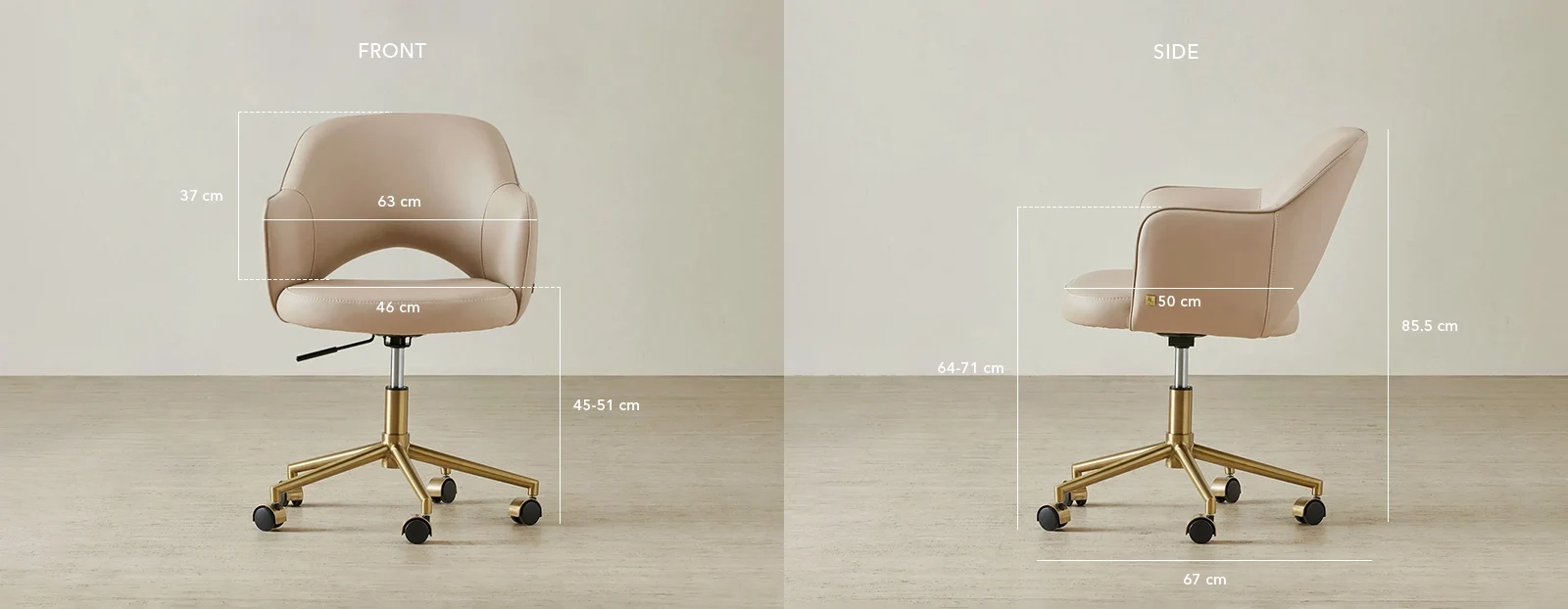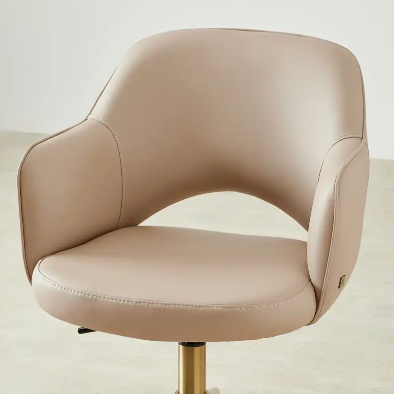 The Adrianna Desk Chair is designed to support you through long hours with comfort and ease. Upholstered in Sand Beige vegan leather, it offers a smooth, low-maintenance surface suited to everyday use.