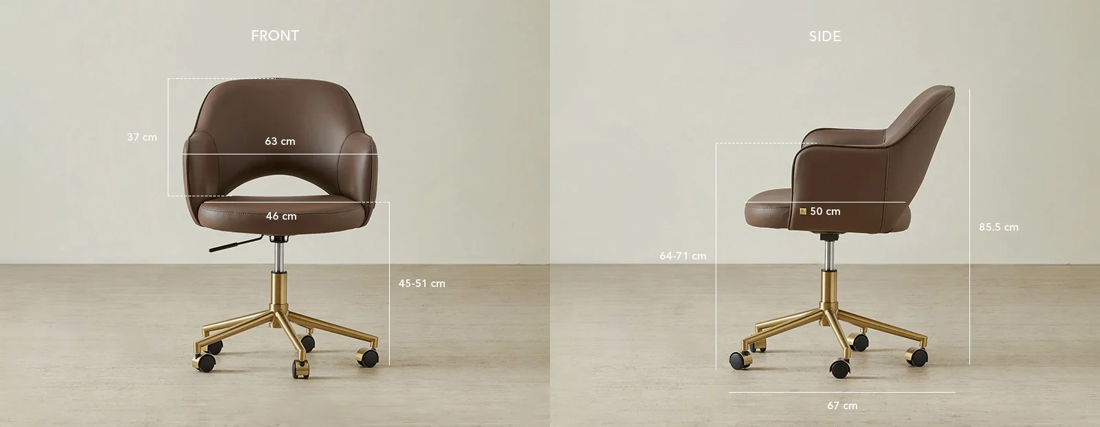 The Adrianna Office Chair is designed to support you through long hours with comfort and ease. Upholstered in Tuscan Brown vegan leather, it offers a rich, smooth surface that's easy to maintain for everyday use.