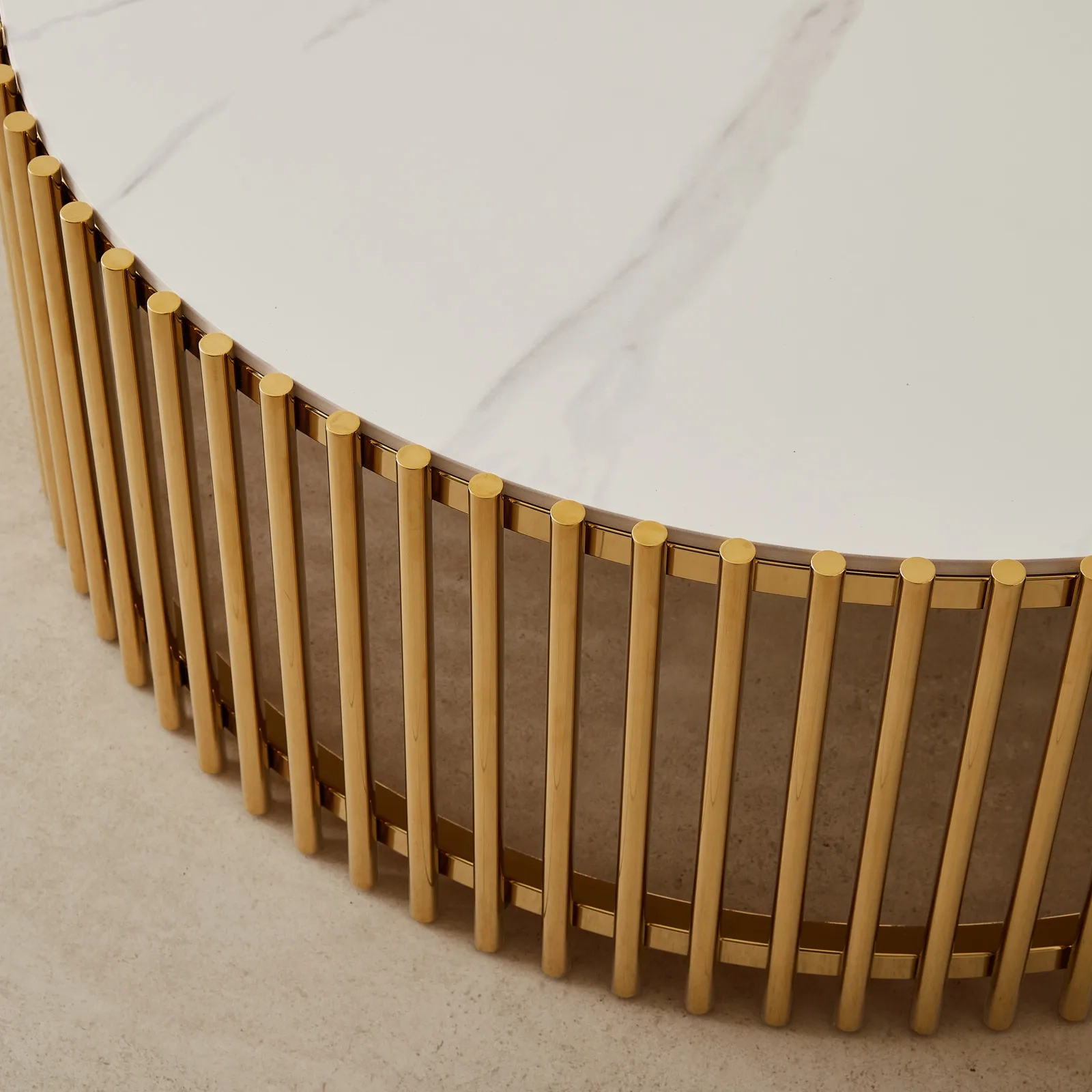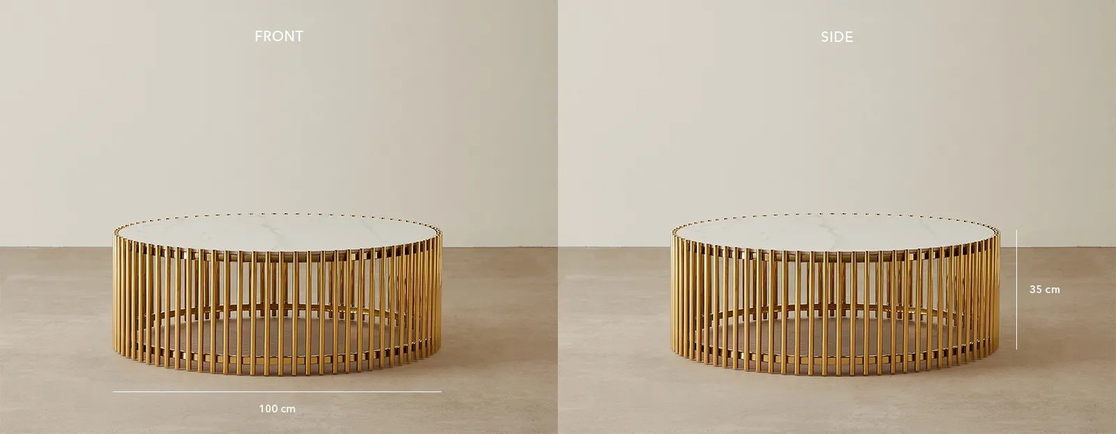 The Amaya Coffee Table embodies elegance with its circular white sintered stone top, poised for stylish centerpieces or your morning coffee ritual.