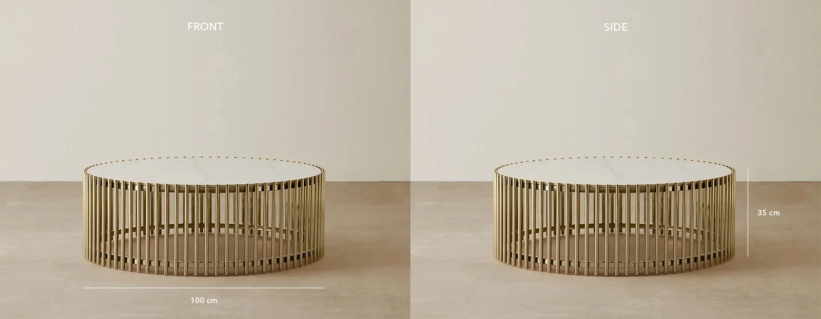 The Amaya Coffee Table embodies elegance with its circular white sintered stone top, poised for stylish centerpieces or your morning coffee ritual.