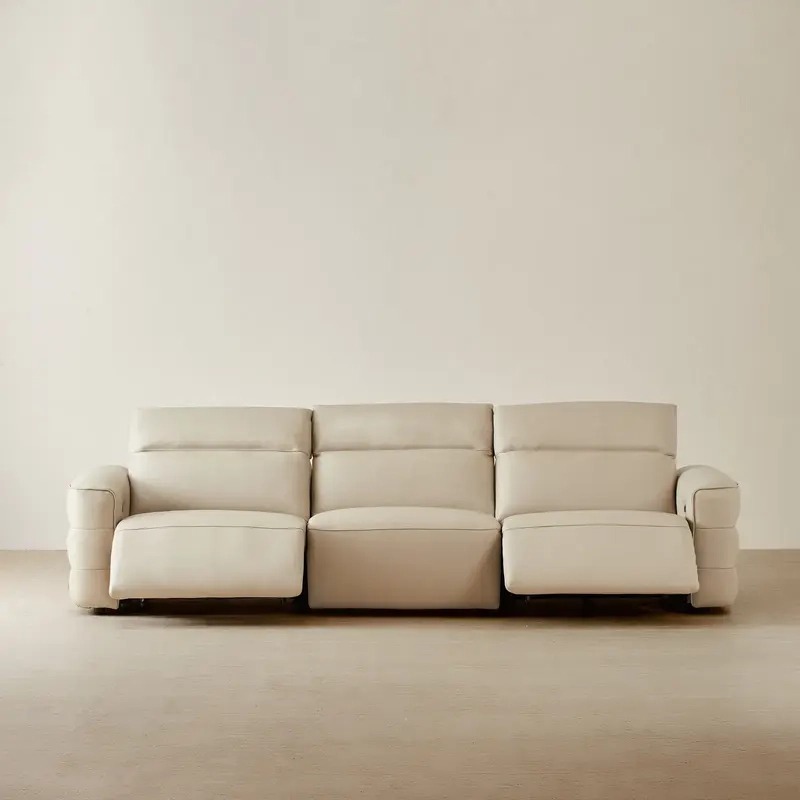 Wrapped in smooth almond cream leather, the Amelie Recliner offers a refined and inviting feel. Its spacious 3-piece modular design provides ample room for unwinding solo or enjoying time with family and friends.