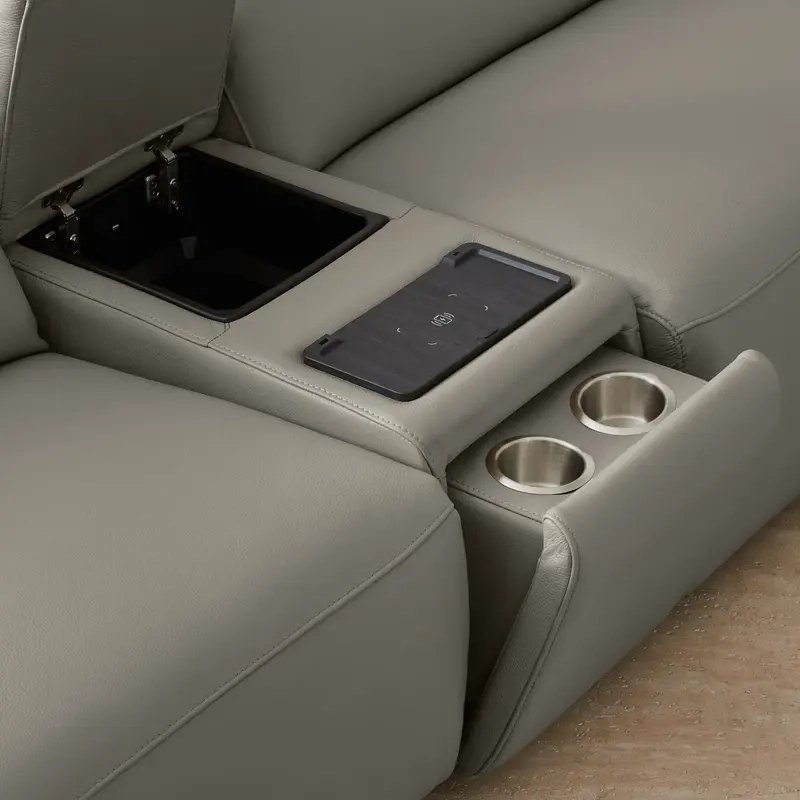 Designed with dual electric recliners on both ends, this modular sofa offers personalised comfort at the touch of a button. The single rectangle console features storage, cup holders, and wired and wireless charging, while built-in reading lights complete the setup for effortless lounging.