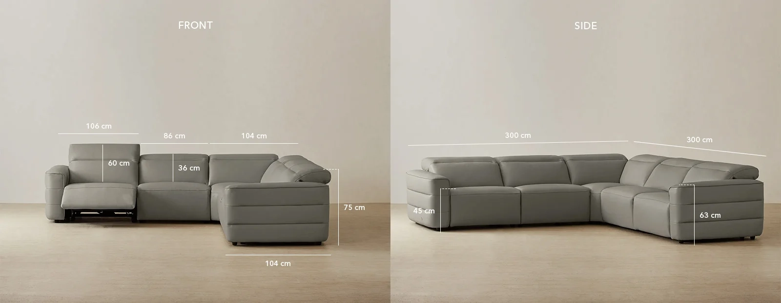 Equipped with dual electric recliners, this modular sofa provides personalised comfort at the touch of a button. The thoughtful design combines modern style with practical functionality, ensuring effortless relaxation.