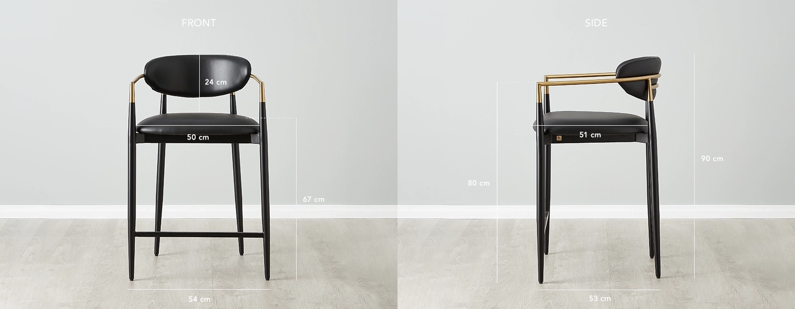 The Amy Counter Stool echoes the timeless beauty of the Viscount chair design. With golden-coloured embellishments and a dark metal frame, it combines traditional charm with contemporary style.