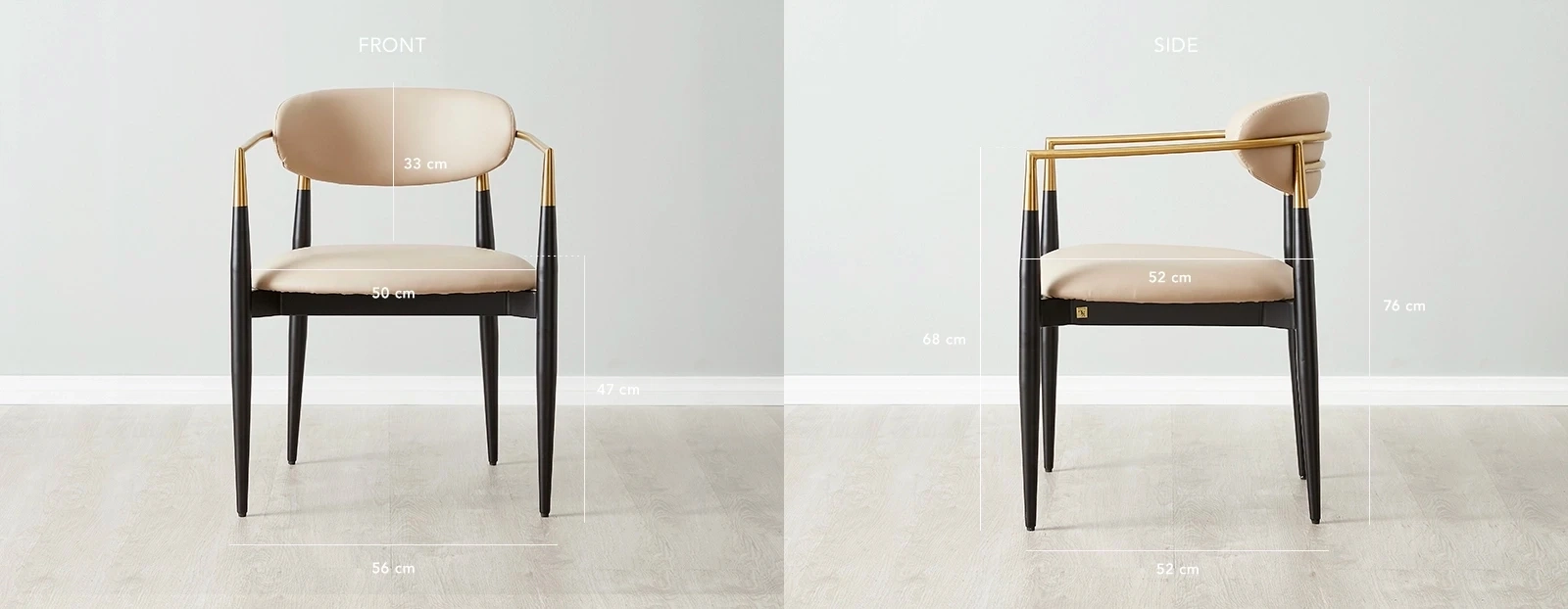 The Amy Dining Chair captures the timeless beauty of the Viscount chair design, celebrated for its elegant simplicity. With golden-coloured embellishments and a striking black metal frame, it effortlessly combines traditional charm with contemporary style.