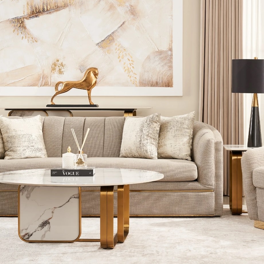 Scattered across the surreal canvas, abstract golden leaves seem to emerge organically, branching out from the stark dark lines that traverse the painting like veins of life. These golden elements add a touch of the ethereal, their metallic sheen providing a stark contrast to the softness of the beige spiral, and bringing a warm, luminous quality that feels both luxurious and intimate.