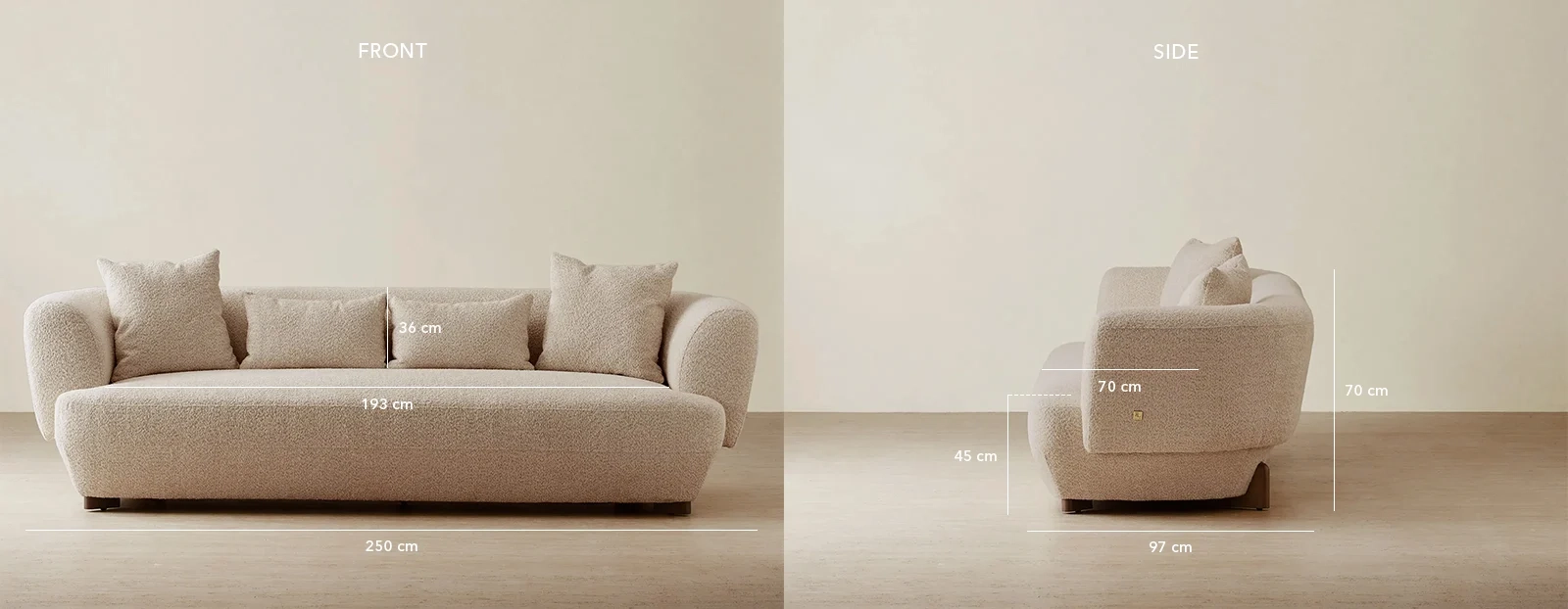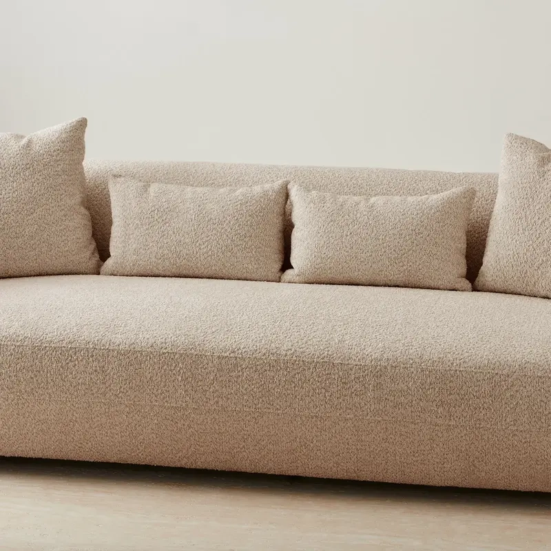 Its neutral mid beige hue brings warmth and sophistication, effortlessly complementing various interiors. The sofa includes plush cushions for extra comfort, making it perfect for lounging or entertaining.