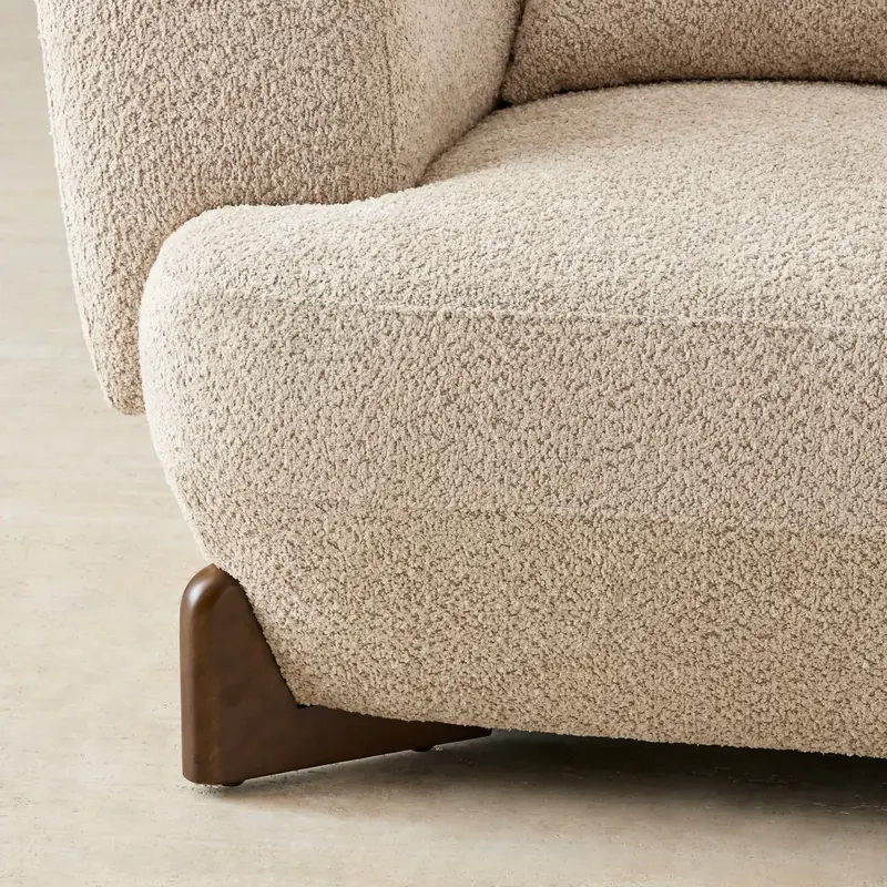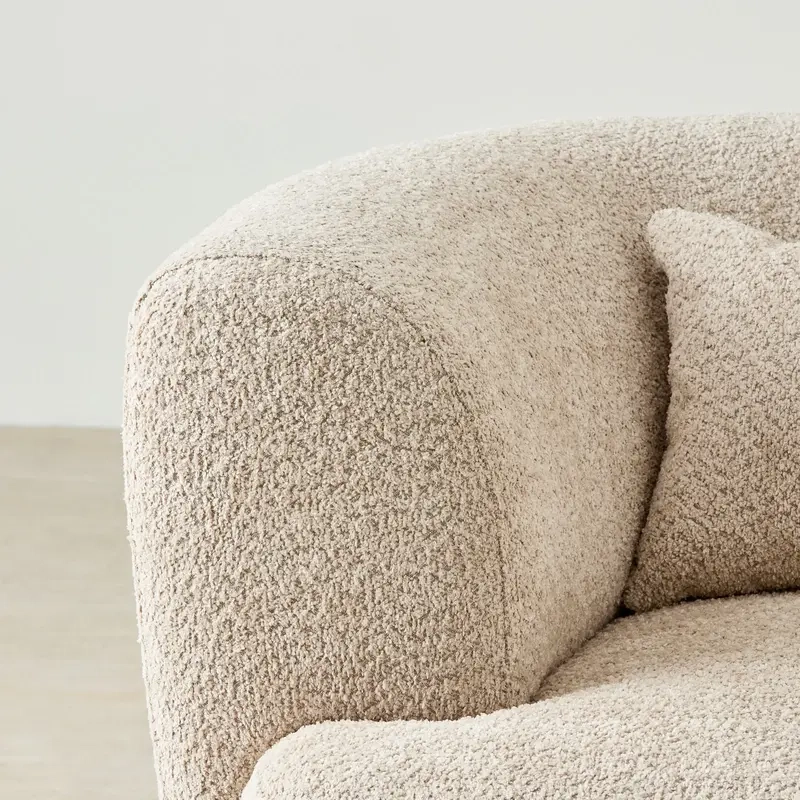The Antonella Occasional Chair features a curved silhouette that gently surrounds you in comfort. Upholstered in mid beige woven fabric, it creates a cozy seating experience that suits both relaxing and reading.