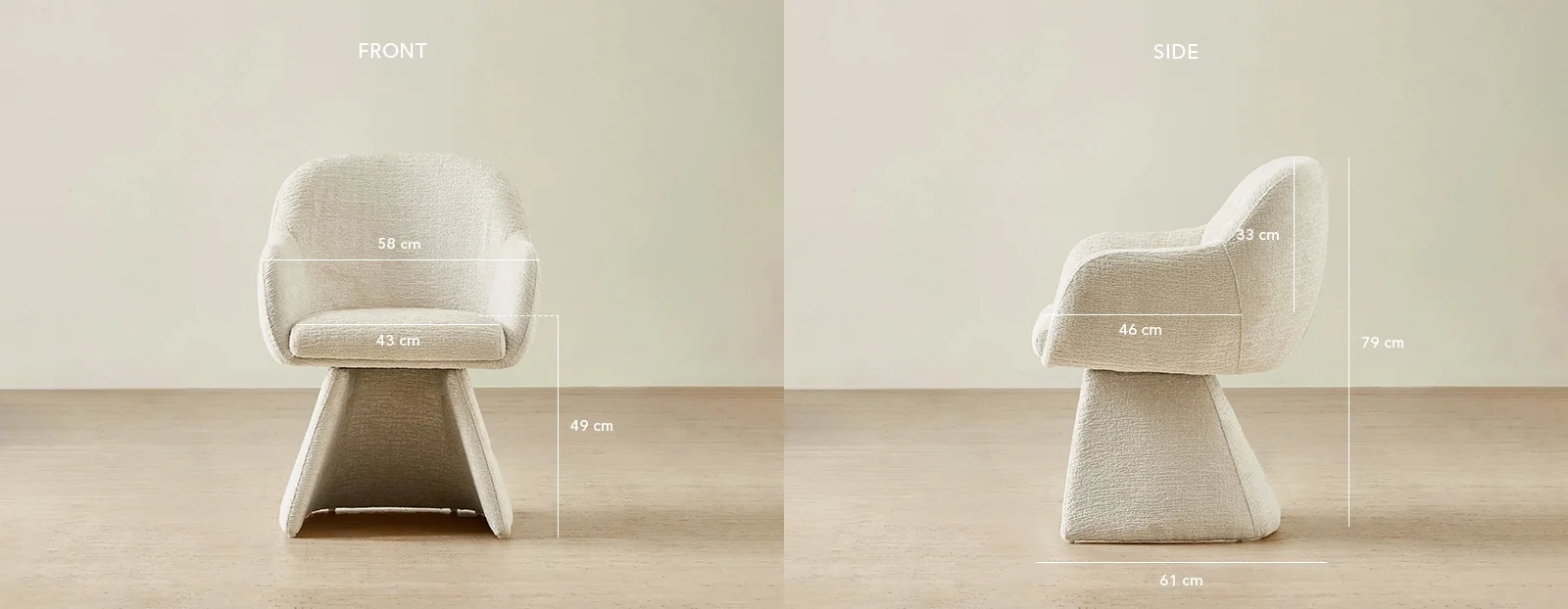 The Antonia Dining Chair in Fusion Grey brings modern comfort and form to the dining space. Its smooth, rounded silhouette flows into gently curved arms.
