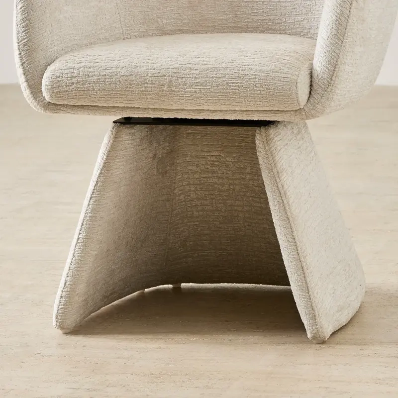 Its unique swivel base offers both function and flair. Supported by a wide, flared pedestal design, it stands out as a statement piece.