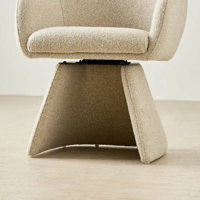 Its unique swivel base offers both function and flair. Supported by a wide, flared pedestal design, it stands out as a statement piece.
