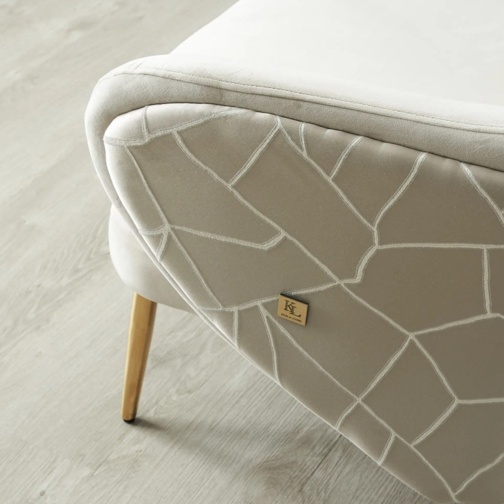 The Anya Cream Velvet with Back Pattern Occasional Chair combines art-deco style with contemporary luxury. Draped in cream-colored velvet, it offers softness and soothing colors on a beautifully designed frame.