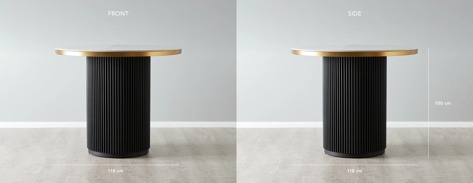 A single, statuesque column supports this lavish tabletop, a testament to both form and function. The vertical reeding that adorns the column is not just a structural necessity but an artistic statement, harmonizing strength with sophistication. Bathed in a palette of monochromatic hues, the Archie exudes an understated opulence, making it the perfect centerpiece for any modern setting. Complete the ensemble with a curated selection of our Bar Chairs to craft a dining space that's both chic and inviting.