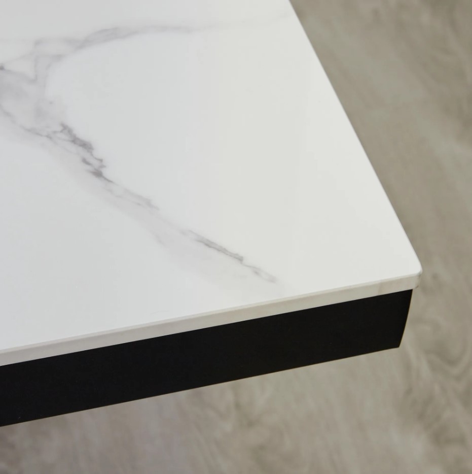 Elevate your dining experience with the Archie White Sintered Stone Dining Table, a paragon of luxury and modern design. This exquisite table is not just a piece of furniture but a statement of refined taste and elegance. Crafted with high-quality materials, the Archie Dining Table is designed to impress and to be the centerpiece of any dining area. The table comfortably seats 6-8 people, making it ideal for both intimate family dinners and larger gatherings. Its spacious tabletop, made from top-grade sintered stone, is not only durable and resistant to stains but also exudes an air of opulence. The surface is adorned with subtle grey veins that meander across the white backdrop, creating a visual dance that captures the eye and accentuates the table’s majestic presence.