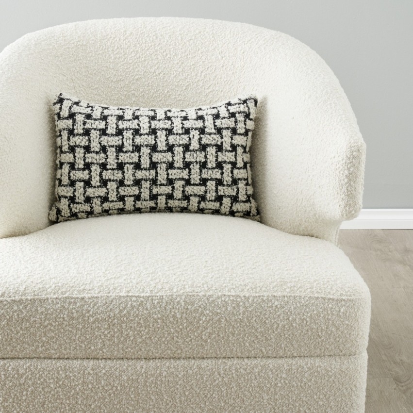 The Arlo Charcoal and Cream Boucle Occasional Chair offers unparalleled comfort with a stylish motif that adds an edge to its elegance. Upholstered in soft, textured boucle fabric, its crafted frame has a chic and inviting look.