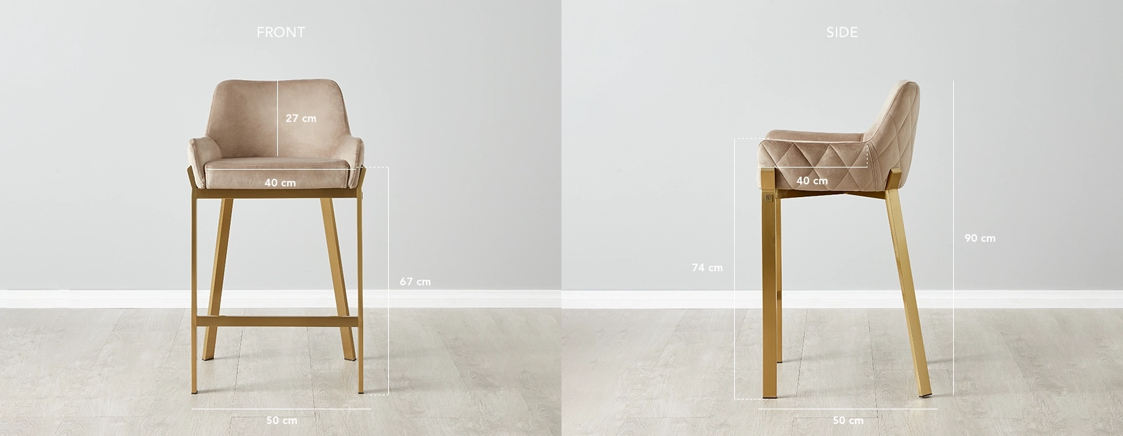 Experience the epitome of modern elegance with our Arya II Beige Velvet Counter Stool. The stool's meticulous design and the luxe appeal is a testament to contemporary sophistication, making it a standout addition to your kitchen or bar area. Upholstered in sumptuous velvet, the stool’s seat invites you to indulge in its tactile luxury. The velvet, in a versatile shade, is both sensuous and inviting, promising to make a statement in any setting.