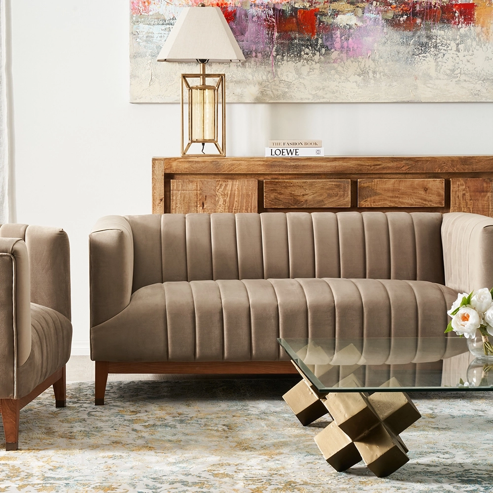 The Astoria III 2-Seater Sofa captures timeless style with its striking tuxedo design. Wrapped in premium beige fabric, the sofa exudes luxury and elegance.