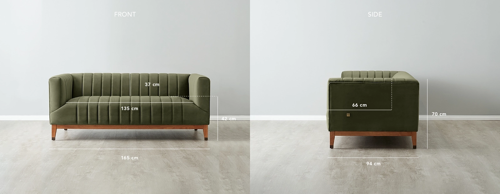 The Astoria III 2-Seater Sofa captures timeless style with its striking tuxedo design. Wrapped in premium olive-green velvet fabric, the sofa exudes luxe elegance.