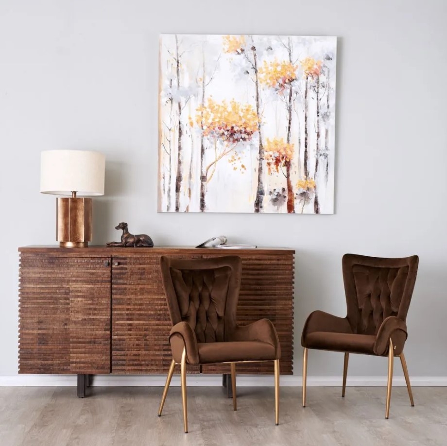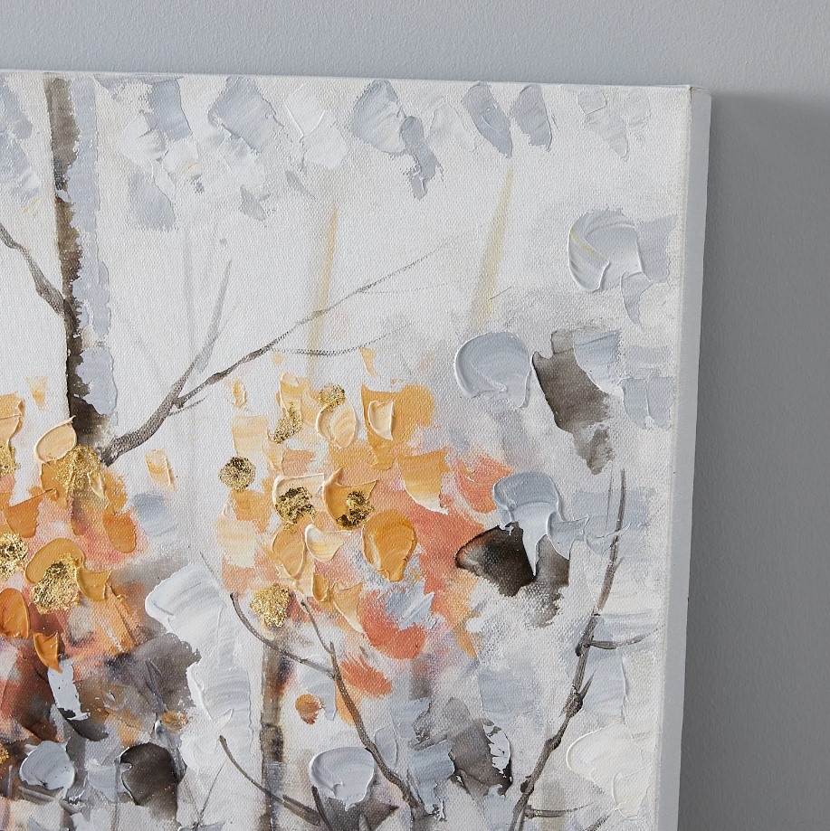 The Autumn Painting gracefully encapsulates the essence of the season in its rich tapestry of colors. Each brushstroke, a fusion of hand-painted artistry and meticulous printwork, echoes the gentle fall of leaves, painting a scene of serene transition. Deep, warm reds and vibrant yellows intermingle on the canvas, evoking the comforting embrace of autumn's golden embrace.