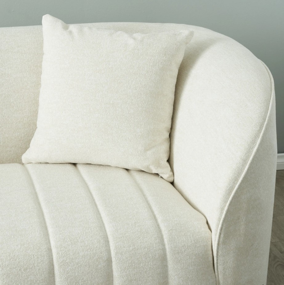 The Ava Cream Fabric 2-Seater Sofa envelops you in comfort and elegance, with its luxurious cream fabric covering every inch of its design.
