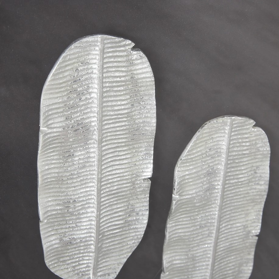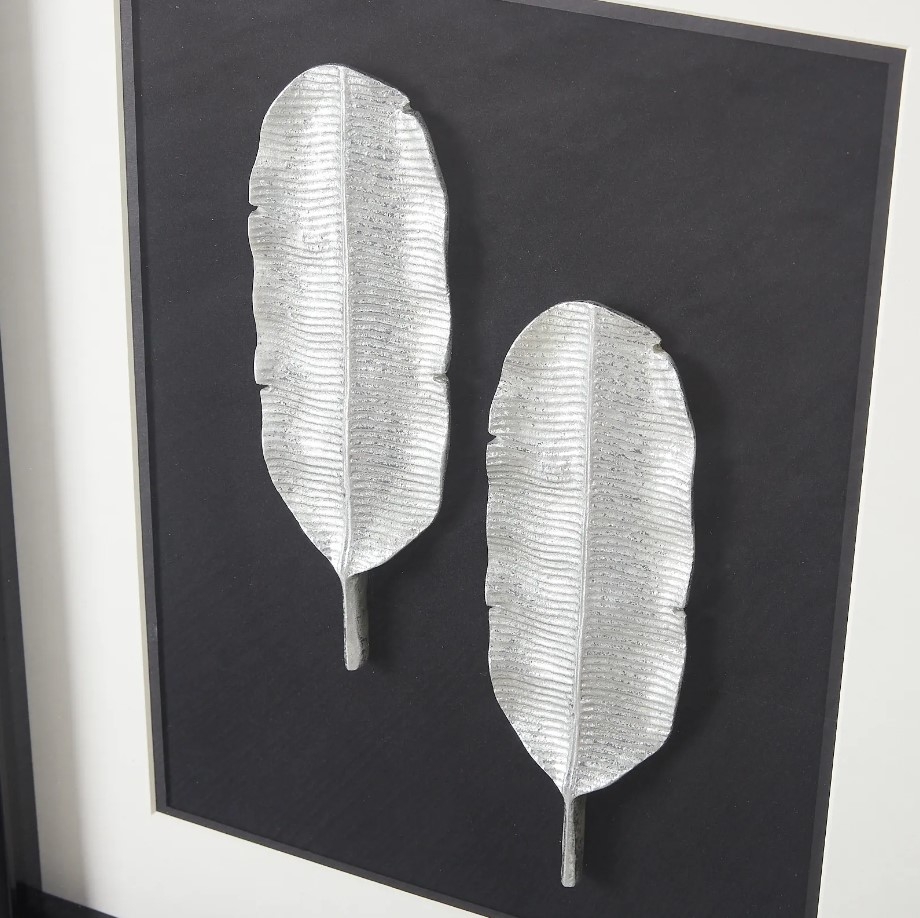 Infusing contemporary artistry with the allure of the tropics, the Banana II Silver Leaf Shadow Box is a testament to refined elegance. Within its sleek black frame lie two meticulously crafted silver banana leaves, their shimmering surfaces reflecting the delicate intricacies and undulating curves of these iconic botanicals.