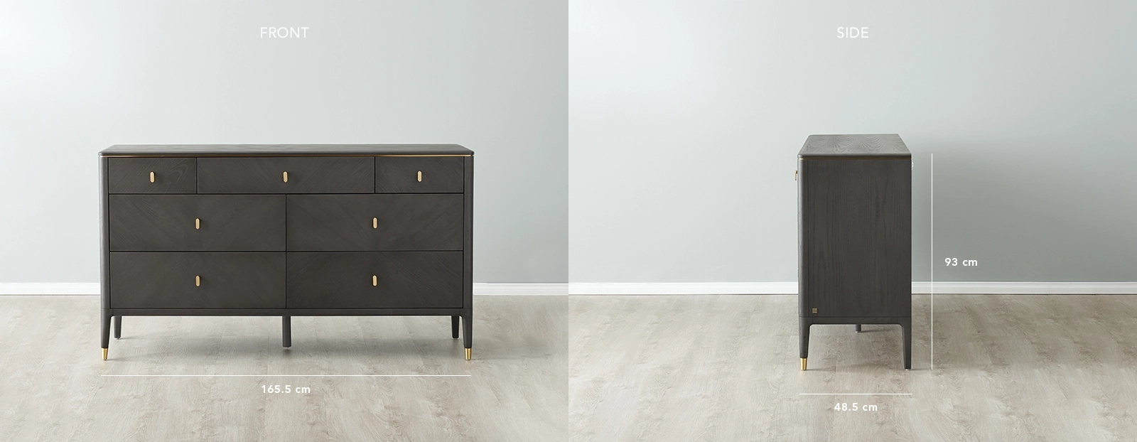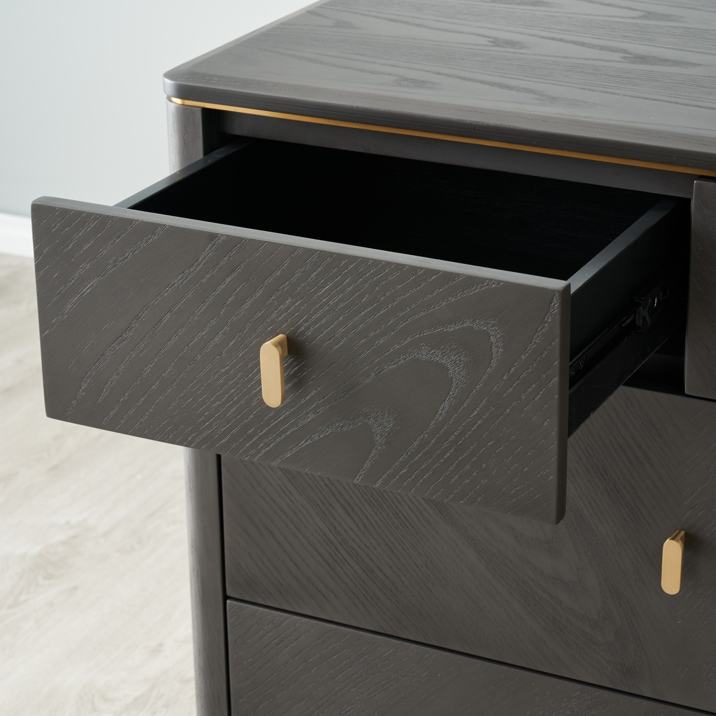 Faintly visible along the Beckham Dark Grey Dressing Table's modern design and colours are markings on the wood, which gives the piece this cozy rustic appeal. Adding to the Beckham's luxury are accents of gold that run along its gorgeous outline and decorate its handles. Stay organized with the Beckham's treasure trove of spacious drawers. Pair the Beckham Dressing Table with one of our stylish dining tables for a gorgeous dining room ensemble.