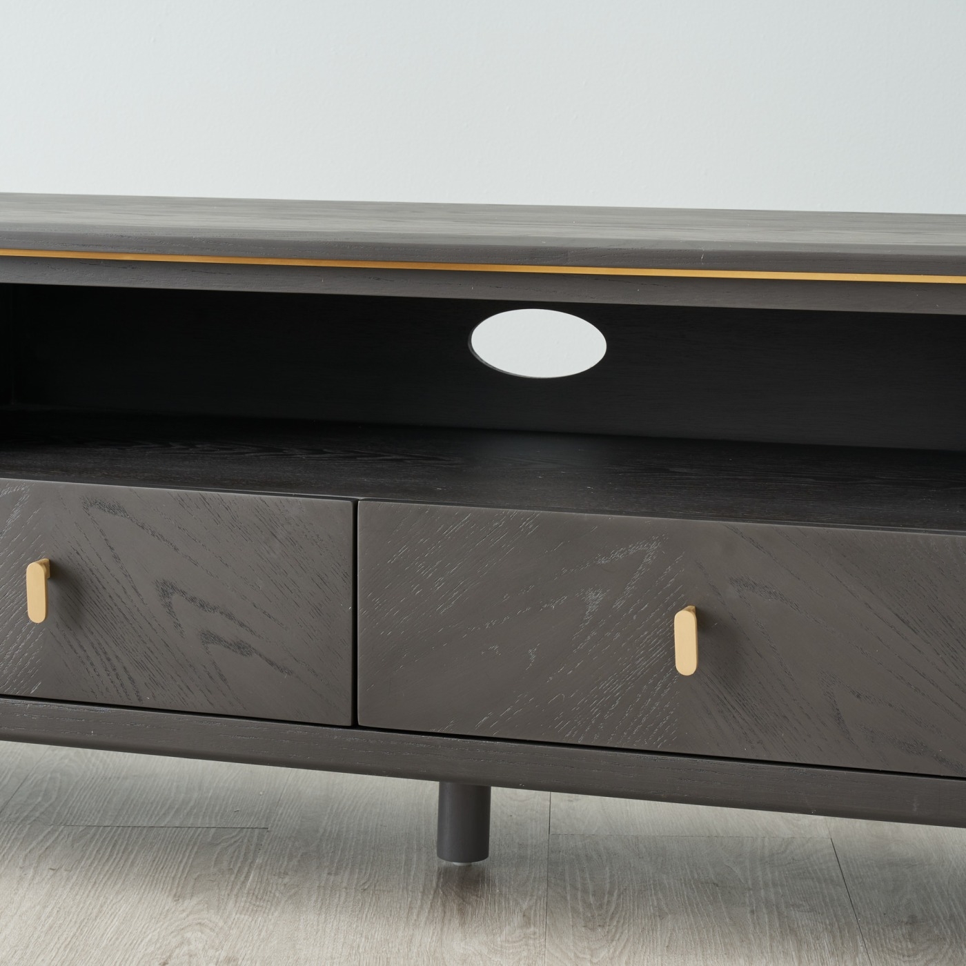 Enjoy television and other forms of media with the modern rustic charm offered by the special Beckham Dark Grey Entertainment Unit. Feel the modernity as you glance upon the Beckham's clean lines and colour. The Beckham retains its charm as hiding among its modern features are faintly visible markings on the high-quality wood; Used to craft its gorgeous frame. This quality Entertainment Unit features a spacious top area, ready to house your television sets and audio devices.