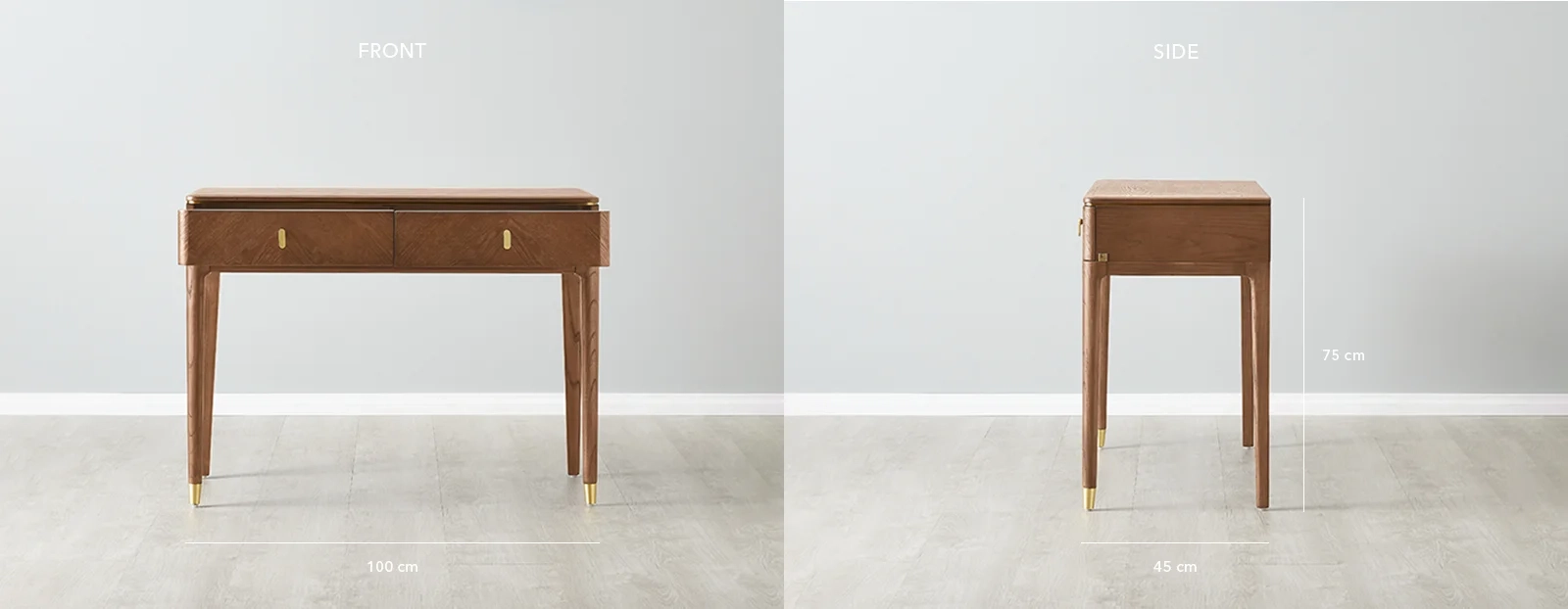 The light brown and gold colours provide a subtle contrast, adding sophistication to the piece. Features two spacious drawers for storing dishes, cutlery, and other essentials.