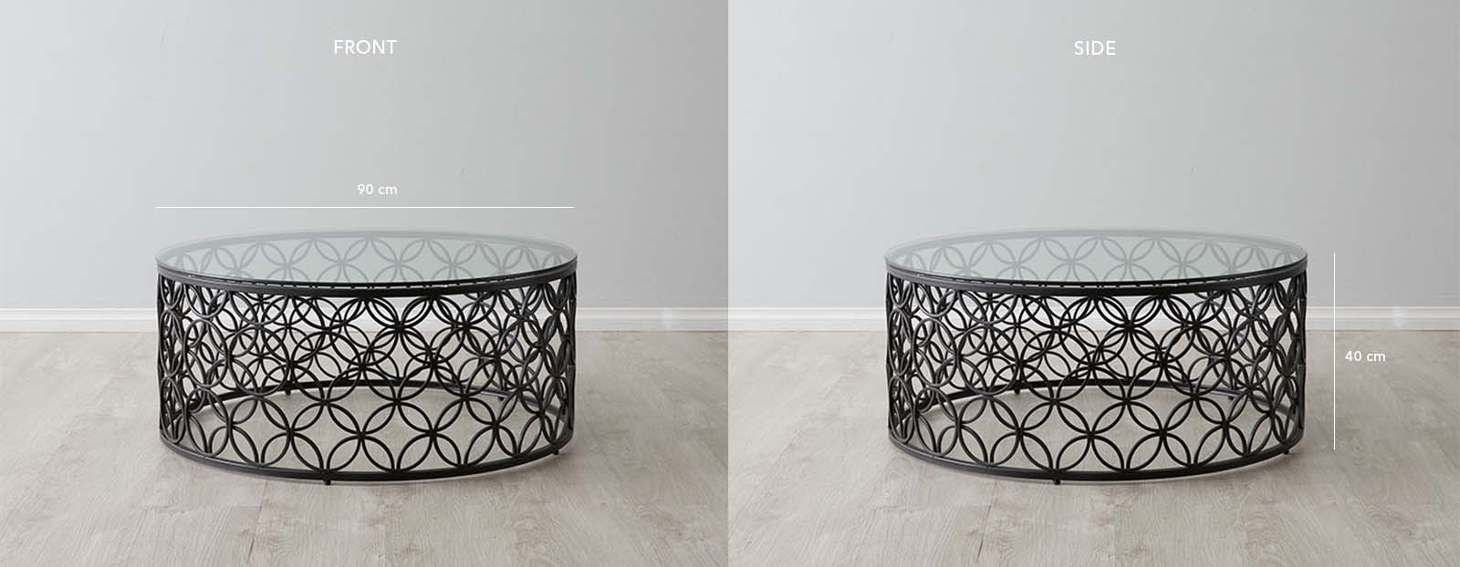 The Bianca Coffee Table is elegantly fashioned from iron legs coated in matte black colour and arranged in a mesmerizing interlinking design. Its generous round surface in tempered glass offers ample potential for a styled sit-together afternoon for tea drinkers. The Bianca can also keep your space clutter free by using its underside as a space for books and magazines. Pair the Bianca with an ensemble of Occasional Chairs along with one of our Sofas to create a luxurious room of comfort.