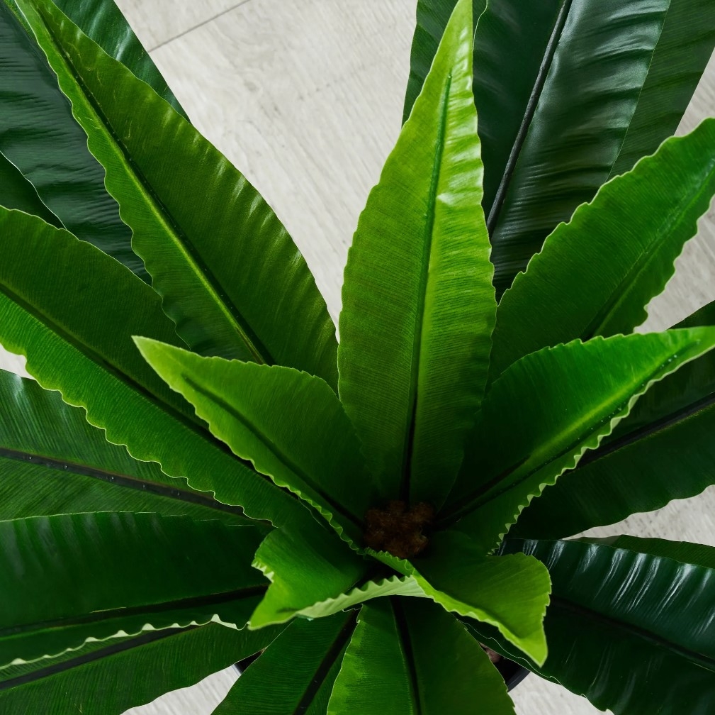 The lush green leaves of the Birds Nest Fern infuse your surroundings with a burst of vibrance. The verdant hues bring life and freshness to your living space, creating a soothing atmosphere that promotes relaxation and tranquility .Every aspect of this decorative plant is a testament to craftsmanship. From the intricate patterns of the fronds to the graceful curve of the stem, each detail is thoughtfully designed to replicate the beauty of nature.