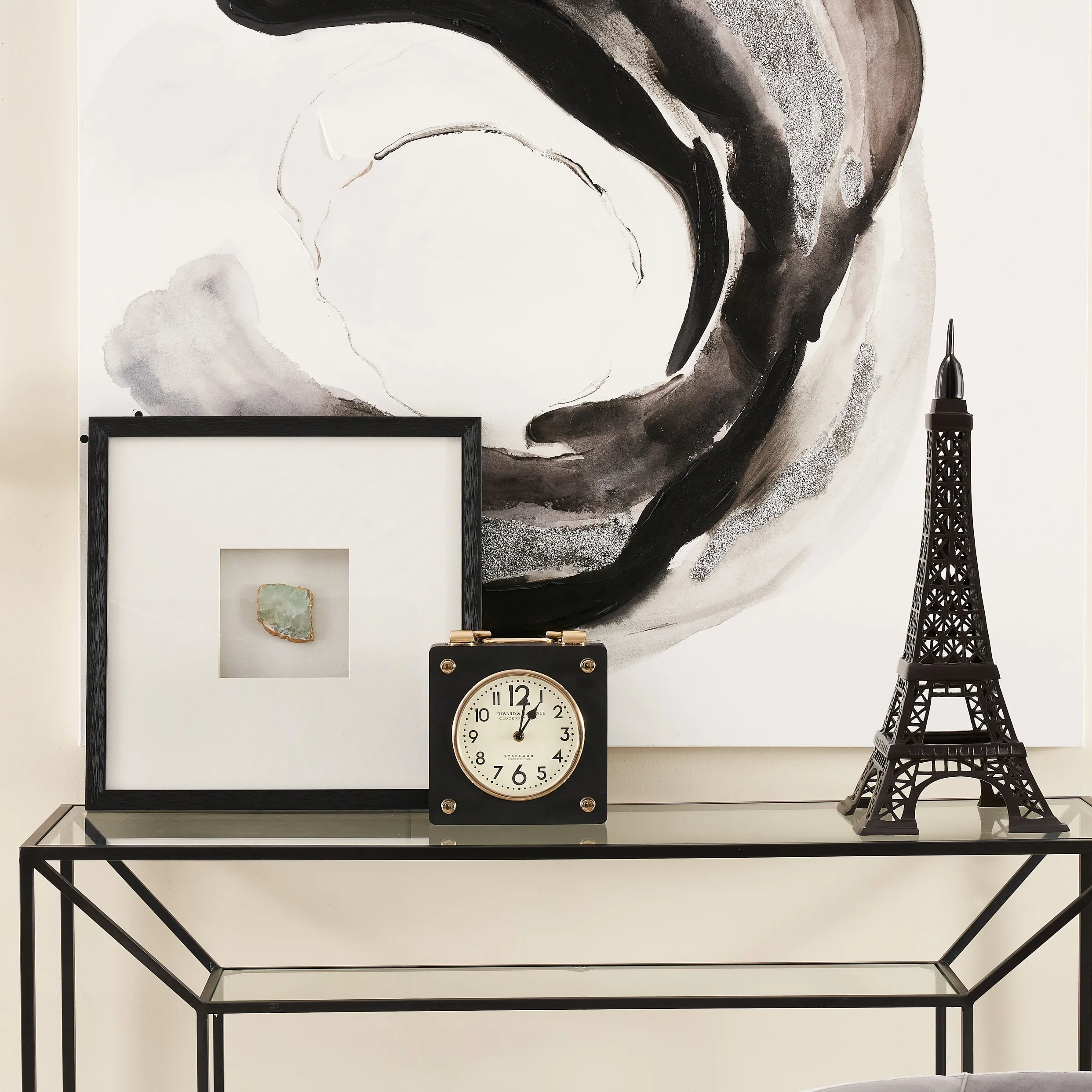 The Blue Storm Stone Shadow Box with Black Frame is a dramatic intersection of modern design and the untamed forces of nature. Encased within a sleek black frame is a single beautiful stone with golden borders that seem to trap a mighty storm within.