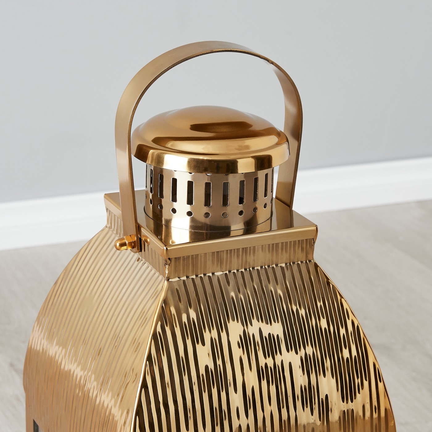 The Bonnie's clear glass borders allow light to effortlessly pass through. The Roof of the lantern features an exhaust that also boasts a luxurious golden shade. The handle itself is a work of art and is fastened to allow you to carry the lantern to any room around your home. The Bonnie Gold Stainless Steel Lantern comes in large and medium-sized variants.