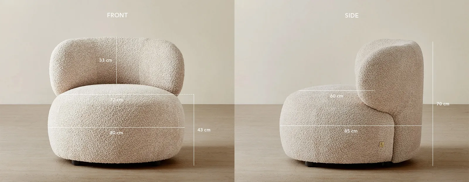 Grounded by a simple base, it blends form and function with quiet confidence. The generous seat and gently rounded backrest offer a grounded, cocoon-like experience, ideal for slow moments and quiet pauses.