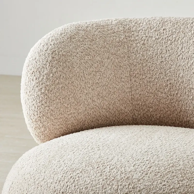 The Brayden Chair invites you to comfort with its sleek, curved silhouette and thoughtfully designed form. Its textured mid-beige fabric enhances the minimalist structure while providing a tactile and inviting finish.