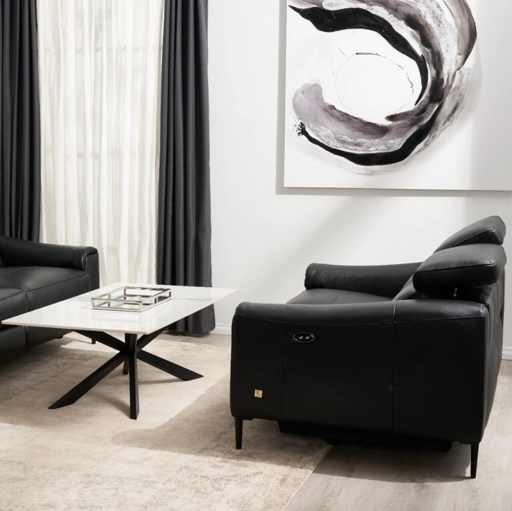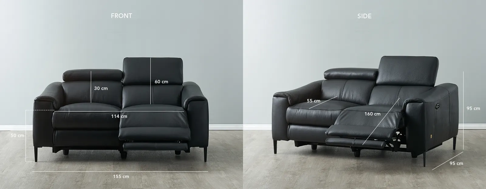 Enhance your space with the luxe modernity of the Bruce 2-Seater Electric Recliner. Draped in genuine black leather and filled with high-density foam, it exudes both elegance and ultimate comfort.