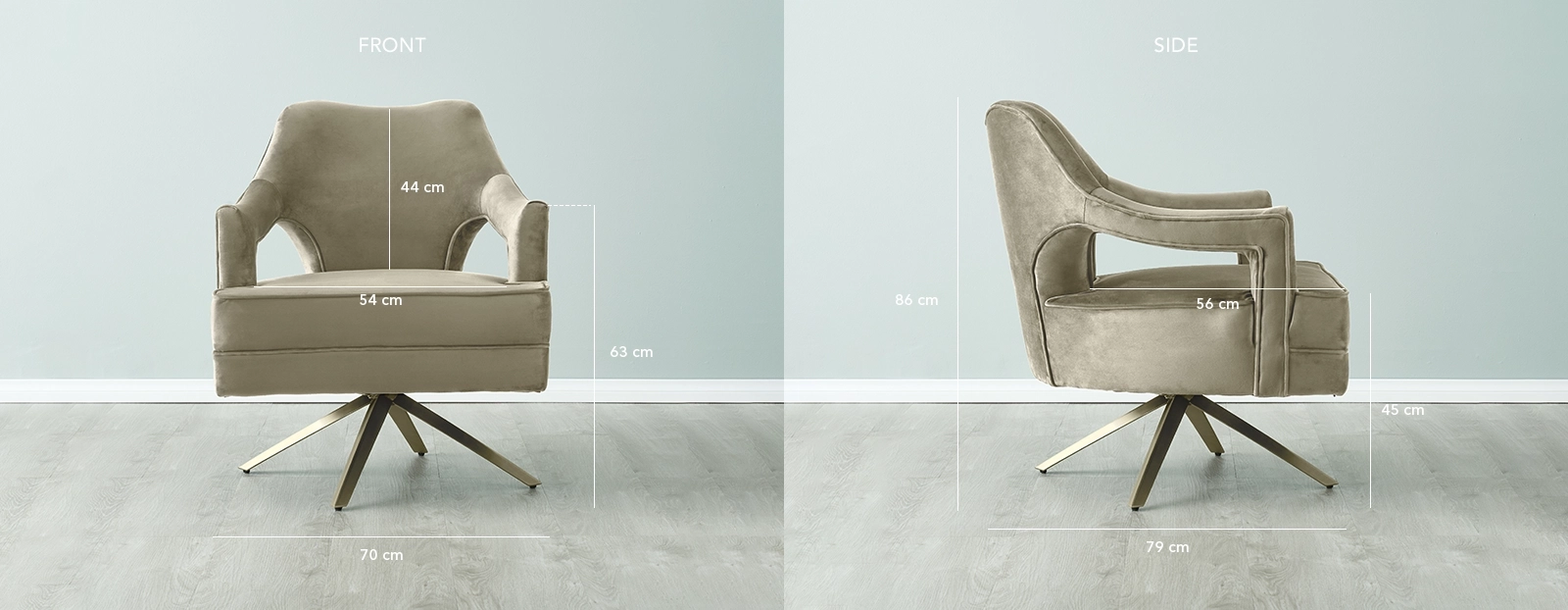 The Burton Chair's four polished stainless-steel legs, finished in a luxe champagne gold coloured shade, provide both stability and a striking visual accent.