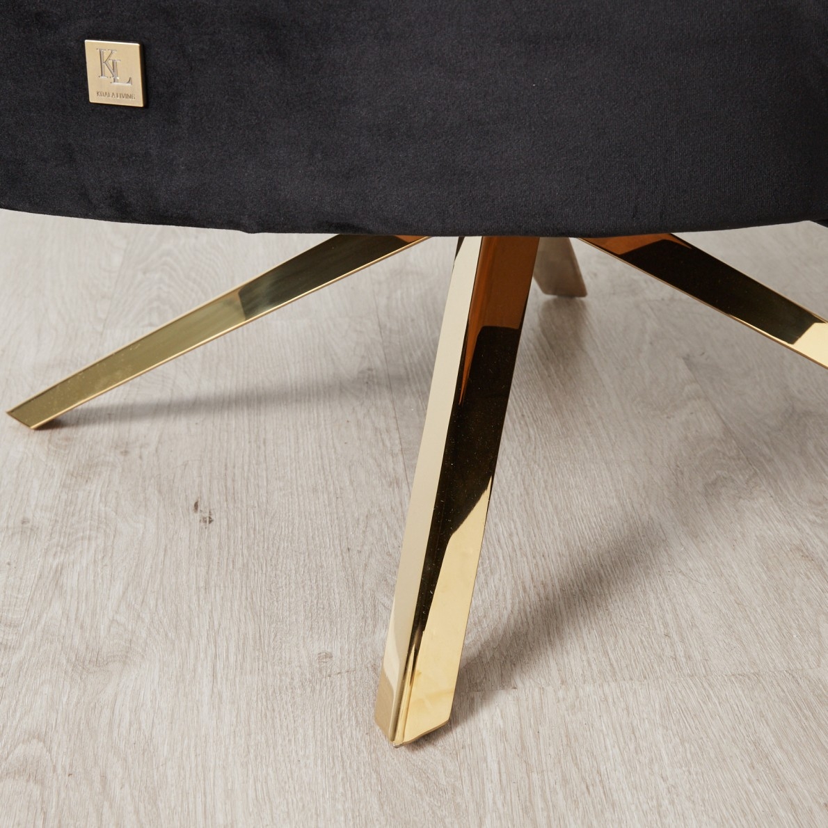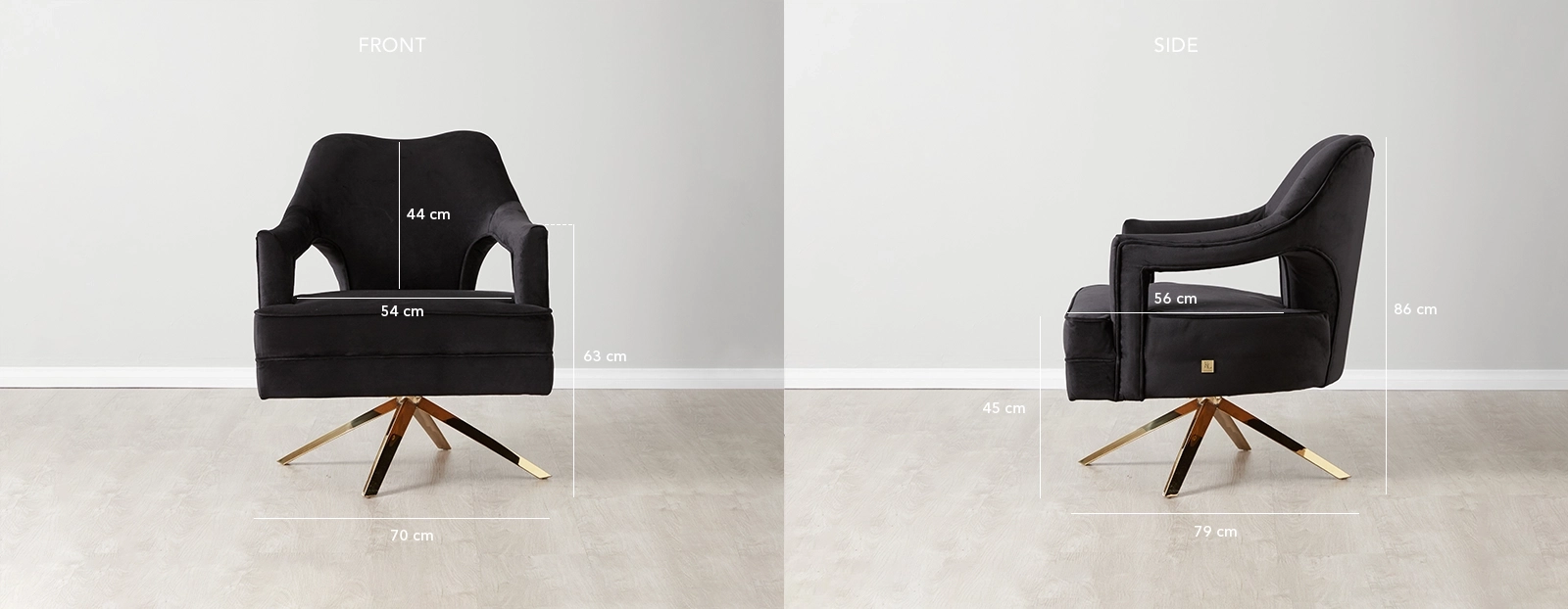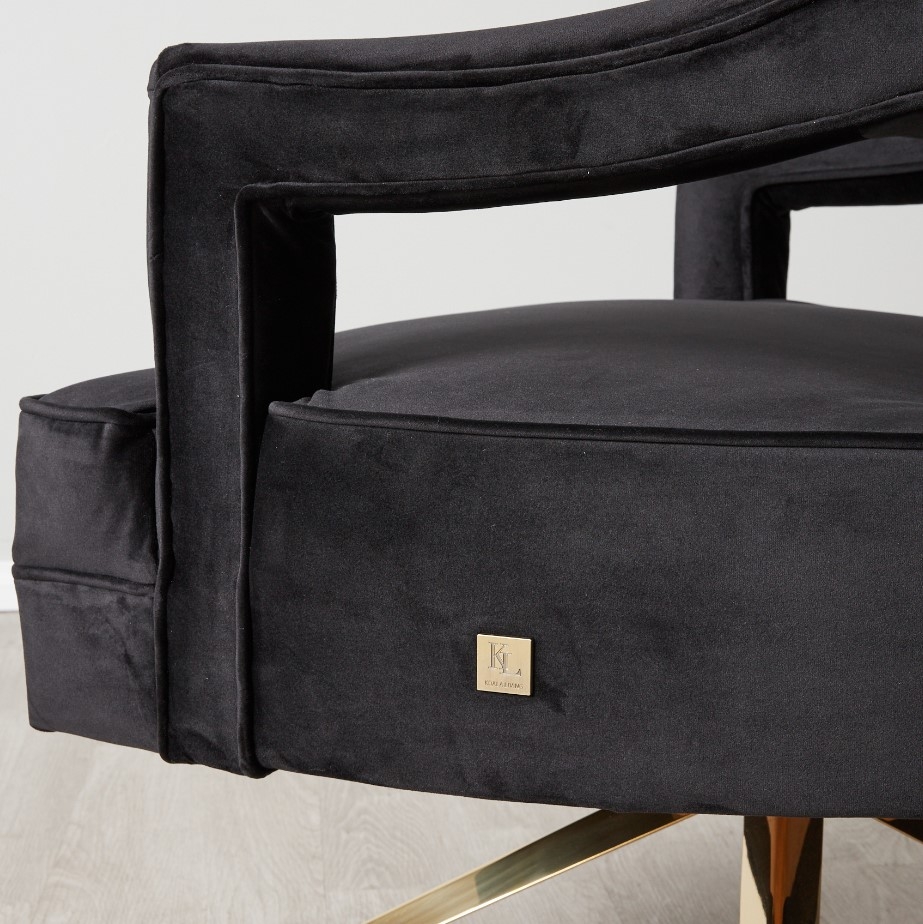 The Burton Occasional Chair combines modern design with timeless elegance. Its black velvet upholstery adds luxurious softness, while the sleek, curved frame complements any interior style.