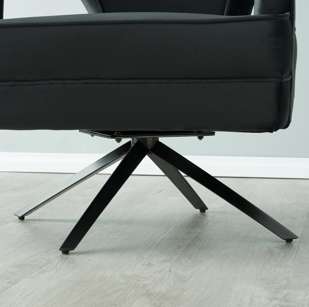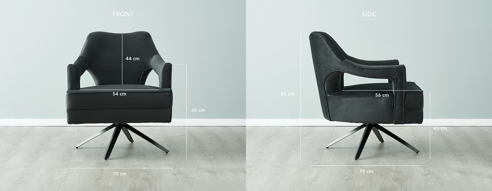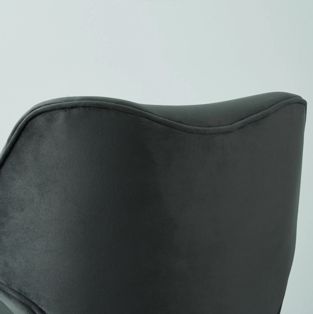 The Burton Occasional Chair combines modern design with timeless elegance. Its charcoal velvet upholstery adds luxurious softness, while the sleek, curved frame complements any interior style.