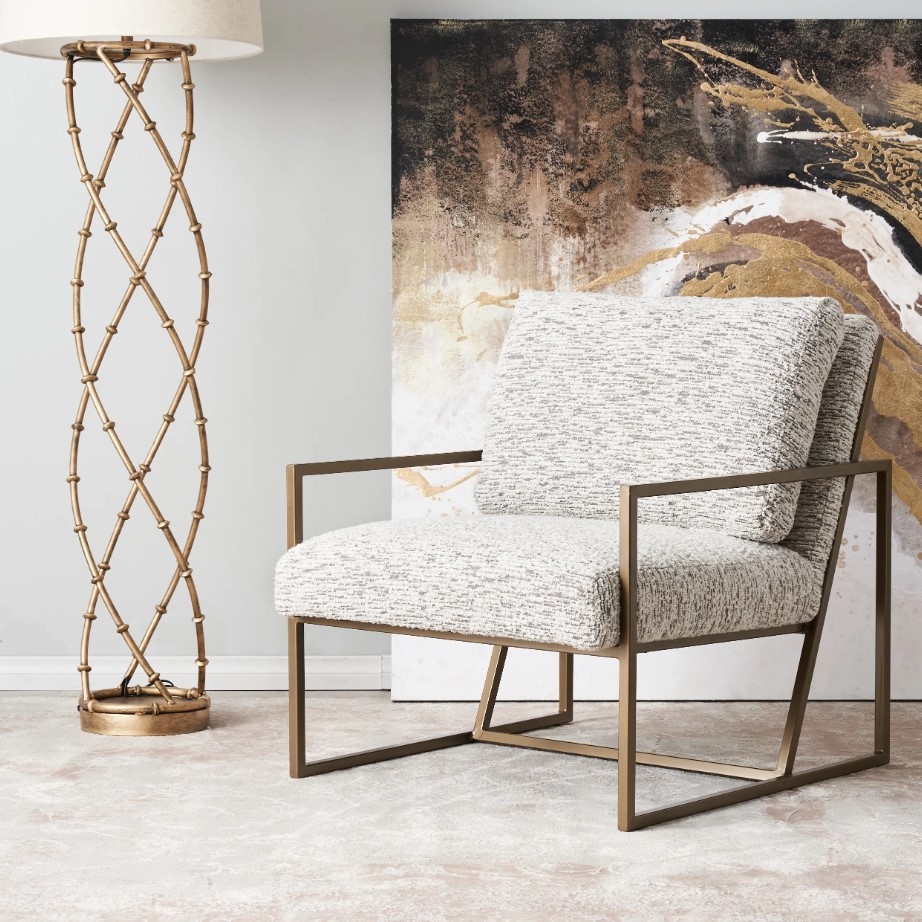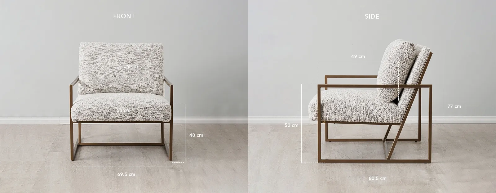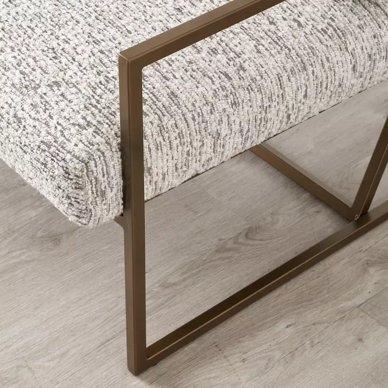 The Callum Chair offers ample comfort and style, making it a great addition to any space. Its open design and mink-and-white boucle cushions create a relaxing aesthetic.