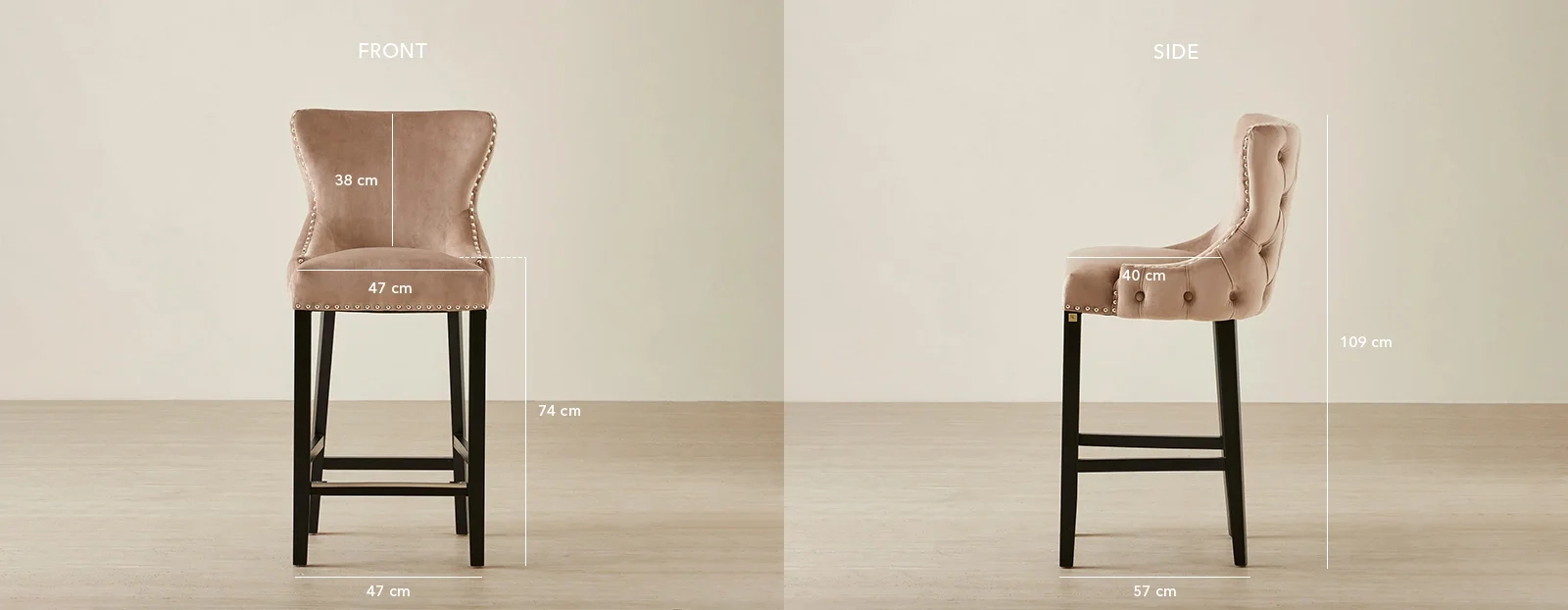 The stool’s four interconnected wooden legs ensure stability while adding a graceful touch, and the mirrored footrest offers a subtle hint of glamour. This elegant piece elevates your bar space, combining luxury with timeless style.