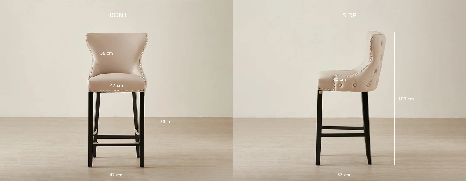 The stool’s four interconnected wooden legs ensure stability while adding a graceful touch, and the mirrored footrest offers a subtle hint of glamour. This elegant piece elevates your bar space, combining luxury with timeless style.
