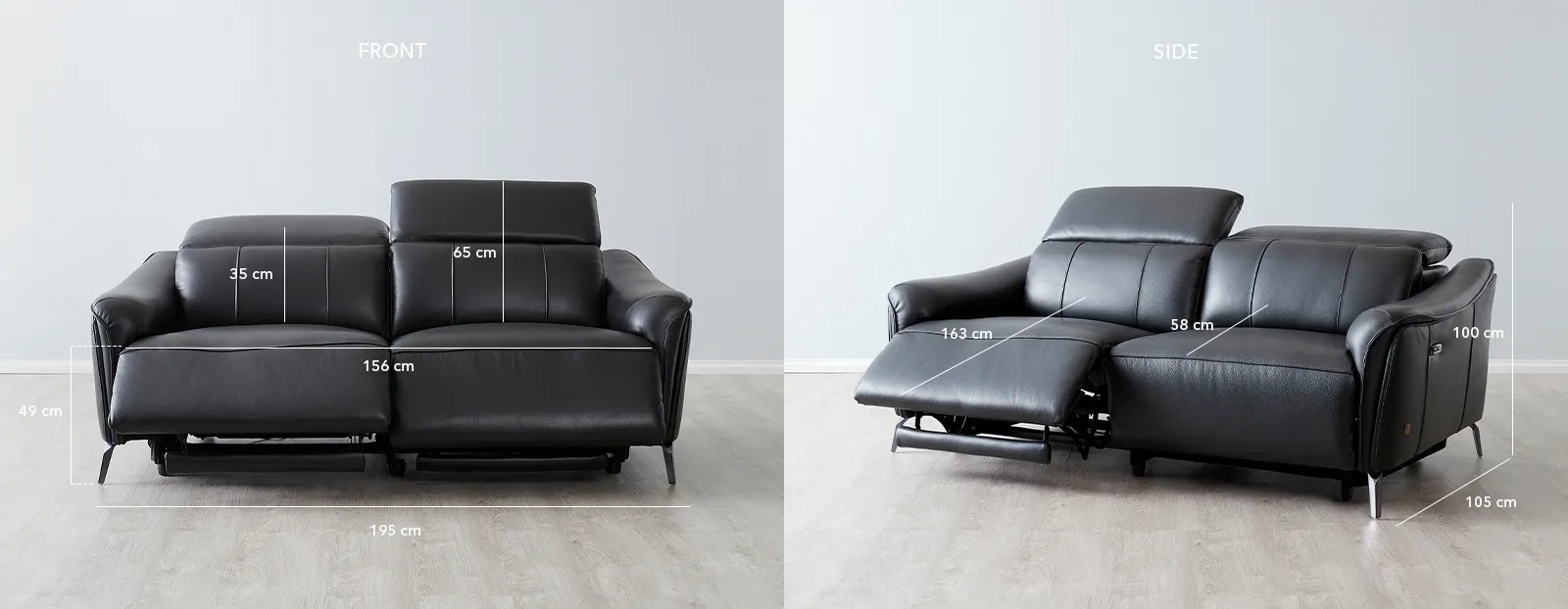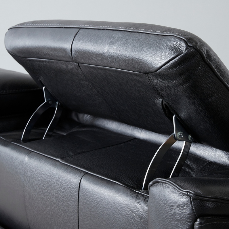 Rest easy with the modern luxury of the Carolina 2-Seater Electric Recliner. Its black leather upholstery adds a touch of distinction, while high-density foam ensures comfort for relaxation.