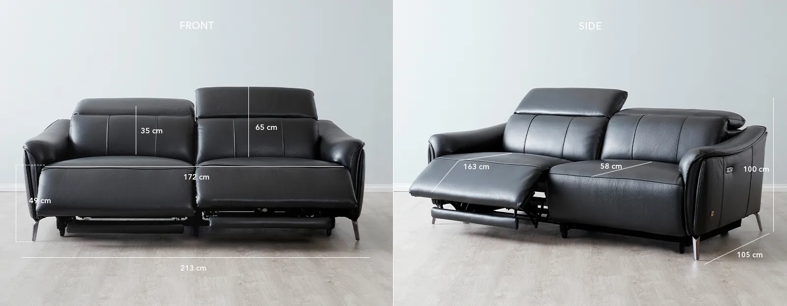Rest easy with the modern luxury of the Carolina 3-Seater Electric Recliner. Its black leather upholstery adds a touch of distinction, while high-density foam ensures comfort for relaxation.