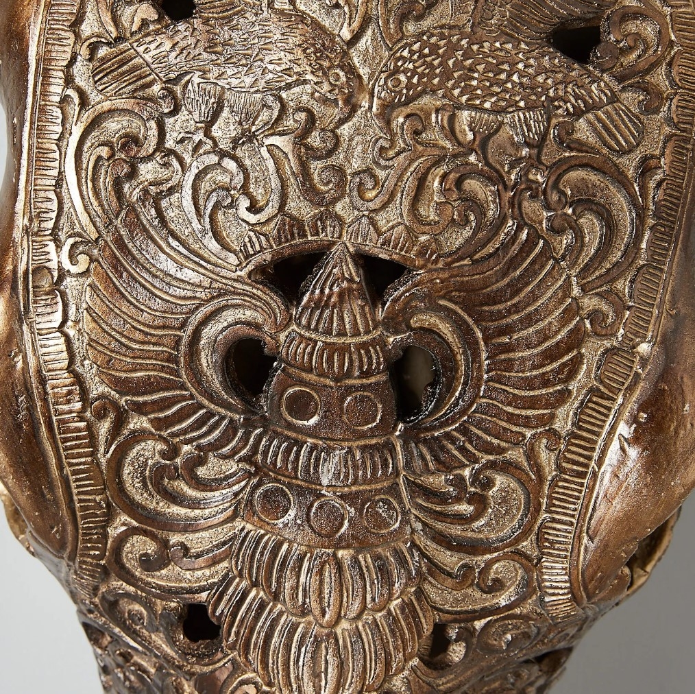 Introducing the Carved Skull Wall Hanging Decorative – a striking testament to artistic craftsmanship that adds a touch of intrigue and allure to your space. Crafted from high-quality resin, this piece showcases a captivating artistic interpretation of a bull skull, adorned with meticulous intricacies that span from its noble forehead to its majestic horns.